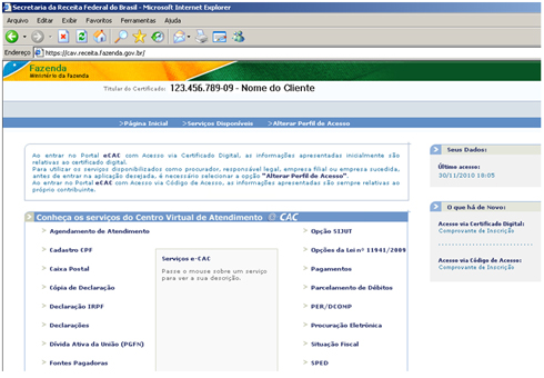 5.7. Por fim, se a tela acima for exibida, contendo o nome do TITULAR DO CERTIFICADO, significa que o CARTÃO e-CPF estará funcionando corretamente.